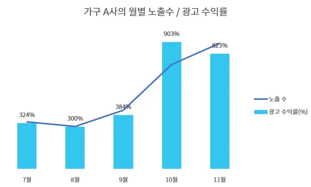 광고 수익률(ROAS): 7월 324% → 10월 최고 903% (▲579%p)